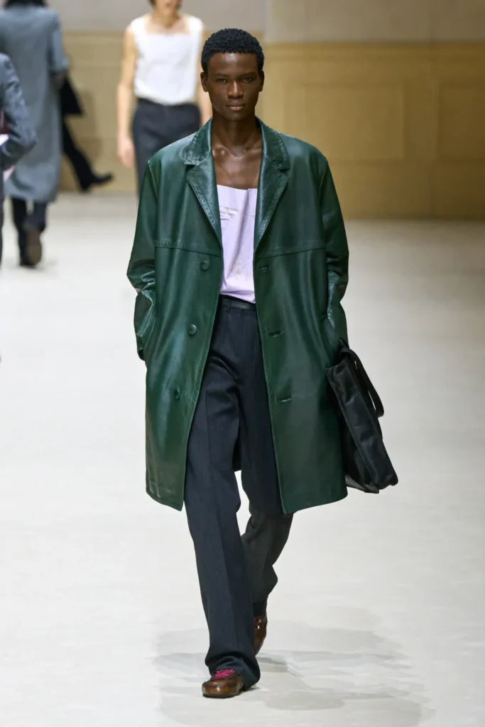 הוצגו גרסאות שונות של אאוטפיטים עם הצבע, החל מחליפה עם משבצות קלאסיות ומעיל בצבע דומה אך בפרינט שונה של משבצות של ראלף לורן, ועד לחליפה ספורטיבית ואוברסייזית במיוחד של ווילי צ’אווריה (Willy Chavarria). אך בסופו של דבר מכל מה שהוצג, נפשי חשקה בעיקר במעיל עור ארוך בגזרה קלאסית של פראדה.