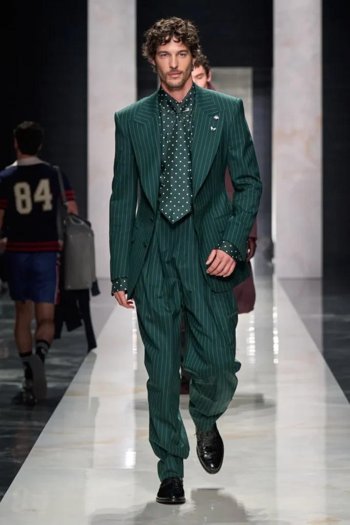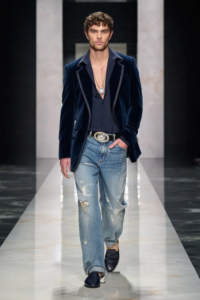זוכרים את הז’קט ממקודם? הוא לא הפריט היחיד מקטיפה שהופיע על המסלול, המגמה הזו חזרה גם אצל דולצ’ה וגבאנה שהשימוש בבד הזה מאד מתאים לסגנון שלהם וגם אצל מעצבים יותר קלאסיים בהוויה שלהם כמו ברלוטי(Berluti) .