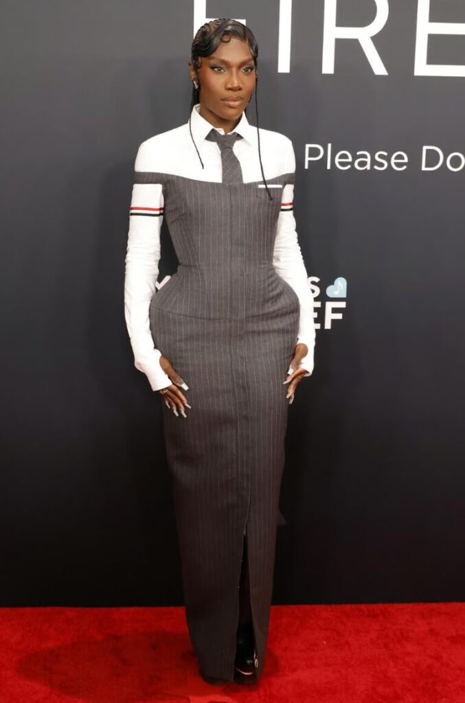 וכמובן, לא ניתן היה להתעלם מההופעה הבלתי נשכחת של דואצ’י. הראפרית האמריקנית, שזכתה בפרס “אלבום הראפ הטוב ביותר”, נראתה מדהים בשמלת פסי סיכה אפורה של תום בראון, והציגה הופעה עוצרת נשימה על הבמה בחזייה ותחתונים לבנים בעיצובו של המעצב, כאשר רקדנים בחליפות אפורות ליוו אותה.