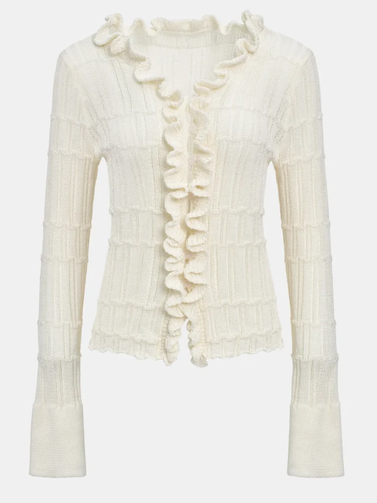 Frilled Knit Cardigan, Ivory