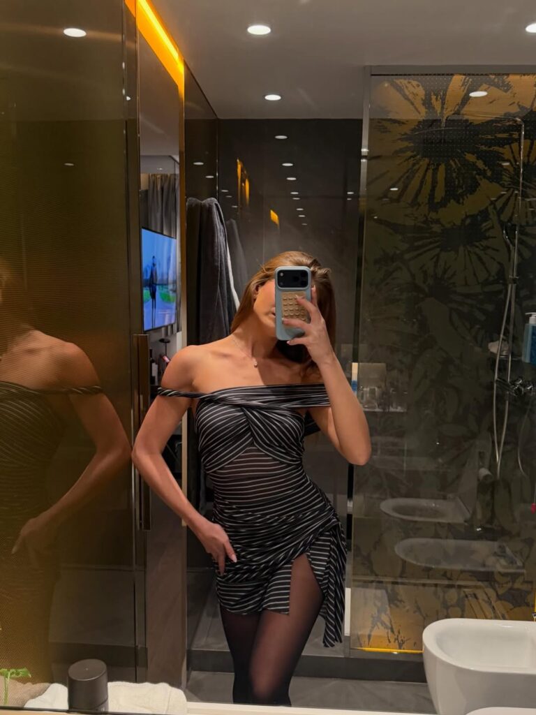 רגע שיא נוסף נרשם בגזרת שמלות המיני עם דגם מעטפת מפוספס של המעצבת רוני קובו. השמלה האסימטרית בשילוב גרביונים שחורים יצרה מראה נונשלנטי אך מוקפד, כזה שמתאים בדיוק לסיבוב בין גלריות לג’לטו משובח. העובדה שאפשר למצוא את השמלה הזו עכשיו בסייל מפתיע באתר ריבולב היא רק הבונוס שחיכינו לו כדי לאמץ קצת מהשיק האיטלקי של טיילור לעצמנו.