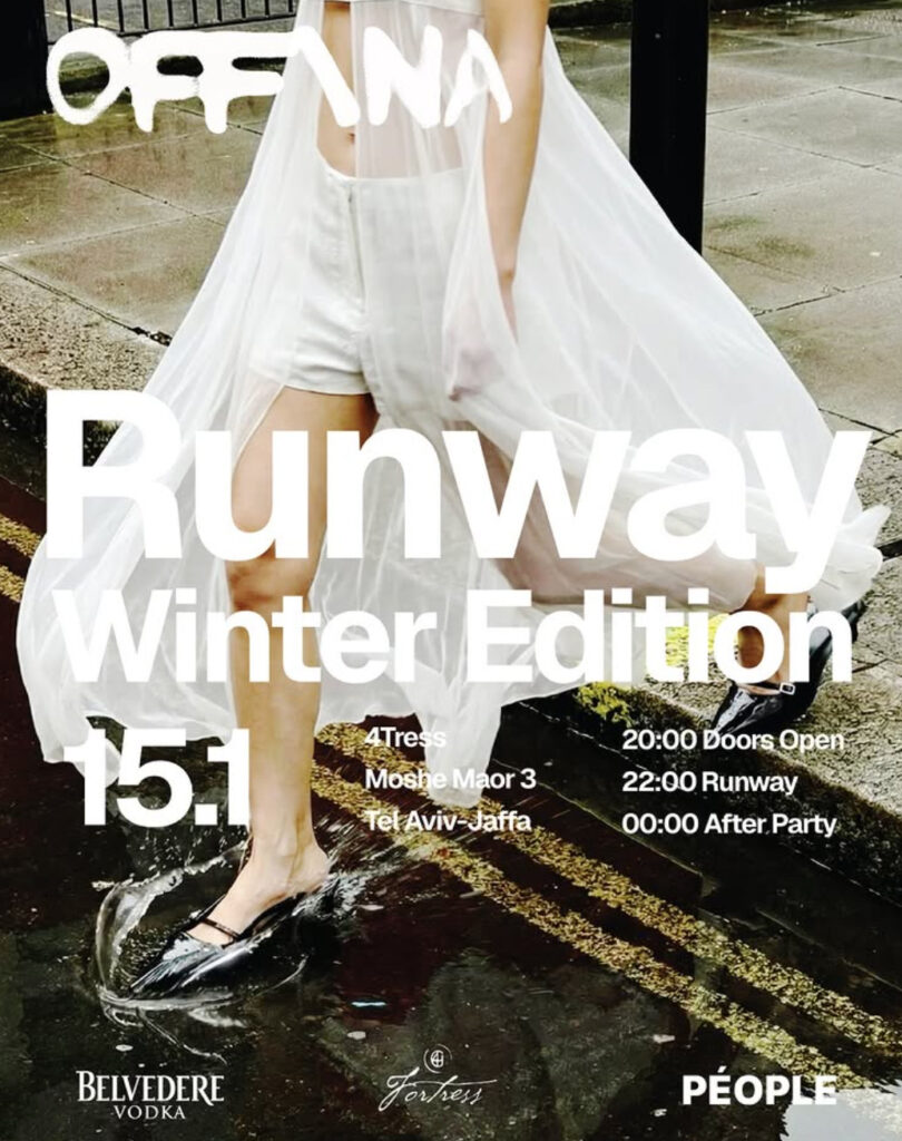 בפעם השנייה, לאחר שהשיקו את המיזם לצד שבוע האופנה בתל אביב והציגו תצוגה אלטרנטיבית ומגזין מודפס שמספק במה לאנשי הצללים של התעשייה, OFF/NA ממשיכה לבסס את עצמה כמרחב שמחבר בין יצירה, קהילה וקול מקומי. ב־15 בינואר תתקיים התצוגה הבאה של המיזם במבצר שמשה מאור 3 בתל אביב, במסלול שמתפרס על פני ארבע קומות ויציג דגמים של מעצבים ומעצבות צעירים לצד יוצרים ויוצרות מתחומי יצירה שונים בתרבות המקומית, כשהבגד הופך לנקודת מפגש בין תחומים שונים.