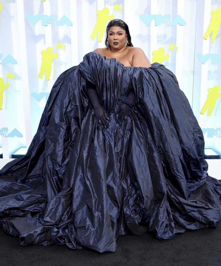 אחת הבולטות בערב הייתה לגמרי ליזו, אחת הזמרות האהובות עליינו שלבשה שמלה דרמטית שמלת ז’אן פול גוטייה, שמלה כחולה בעלת נפח רב עם כיווצים הנראה כמו שמיכת פוך. כמובן זה לא הסוף של המראה הנועז שלה, כפפות בצבע תואם ותכשיטי זהב- טבעת שפתיים של טרמפ ל’איל ולא מעט העגילי חישוק צ’אנקים. ואם שניה נדבר על האיפור ליזו השלימה את הלוק באדום באותו גוון השמלה ושיער שגורם לנו לחשוב שהרגע יצאה מהמקלחת.