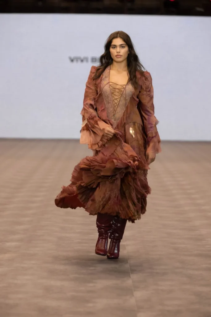 קולקציית סתיו 2025 של ויוי בלאיש מוקדשת לאבלין, אימו, שהייתה לדבריו “הסטייל אייקון הראשון שלי”. בלאיש, שגדל בבית שמש ובאשקלון בשנות ה-70 ותחילת ה-80, חוזר אל העשור האהוב עליו מנקודת מבט אישית במיוחד. דרך הבדים, הצבעים והטקסטורות הוא משחזר רגעים של ילדות ונעורים, אופטימיות זהירה שאפפה את ישראל של אחרי המלחמה, והחיבור בין סגנונות מנוגדים – יוקרה בעבודת יד לצד בגדי רחוב מלאי חיים.