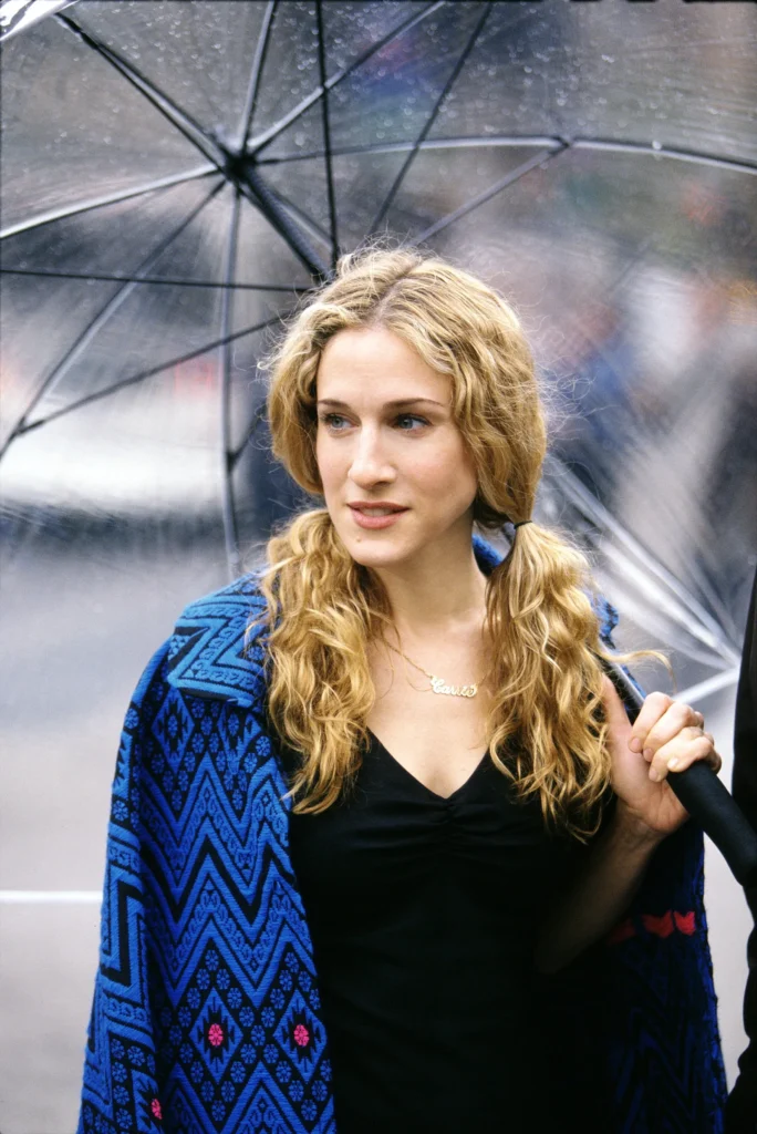 שרשרת “קארי” – תכשיט זהב עם השם שלה, שנלבש בכל עונות SATC הראשונות. היא הצליחה להפוך את השרשרת לפריט טוטאלי שמתאים לכול – מג’ינס וטישירט ועד שמלת נשף.