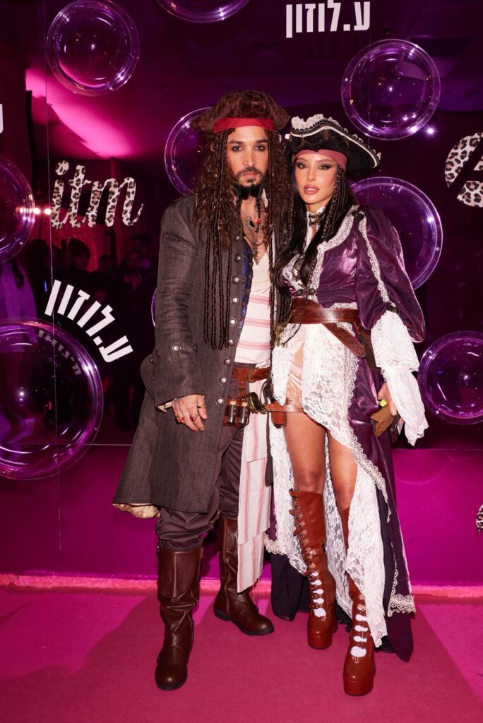 גם מתמודדי “המרוץ למיליון”, עדי עזמי ובעלה אור אוחנה, לא נשארו מאחור והביאו לבלומפילד וייב של הרפתקנות אפלה. השניים התחפשו לזוג פיראטים בלוק עמוס בפרטים, שכבות של בדים עשירים וכובעים רחבי שוליים, שהעניקו נפח מסתורי וייחודי בתוך כל הטירוף הוורוד מסביב.