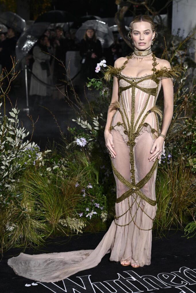 ומרגו רובי, כפי שראינו בעבר, אוהבת לחבר בין הדמויות שהיא מציגה על המסך לבין לוקים על השטיח האדום. לפרמיירה הלונדונית של הסרט היא לבשה שמלה של דילארה פינדיקוגלו (Dilara Findikoglu) ששאבה השראה מטקסי אבלות ויקטוריאנים, ובאופן ספציפי יותר, מהצמיד שאותו ענדה מרגו שהציג עבודת קליעה מורכבת ואבן אמטיסט. מדובר בהעתק מדוייק של צמיד אבלות שהכינו אחיותיה של שרלוט ברונטה, סופרת הספר “אנקת גבהים”, לאחר מותה.