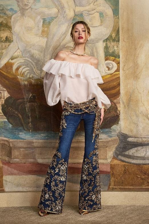 אליס אנד אוליביה (alice + Olivia) הציגו לאחרונה קולקציה ששואבת השראה מ”העידן המוזהב” של סוף ה-19. הקולקציה כולה מלאה בגזרות דרמטיות, תחרות כבדות בכסף, זהב ומחוכים. בעוד שרבים מהלוקים של הקולקציה מציגים פריטים רומנטיים מאד, אחרים יושבים בול תחת ההגדרה של הבוהו האפל. כך לדוגמא בית האופנה הציג לוק של חולצה לבנה שנופלת מהכתפיים והצווארון שלה הוא סרט מסולסל, אותה שילבו עם ג’ינס פדלפון בגזרה נמוכה ועליו תחרה בזהב.