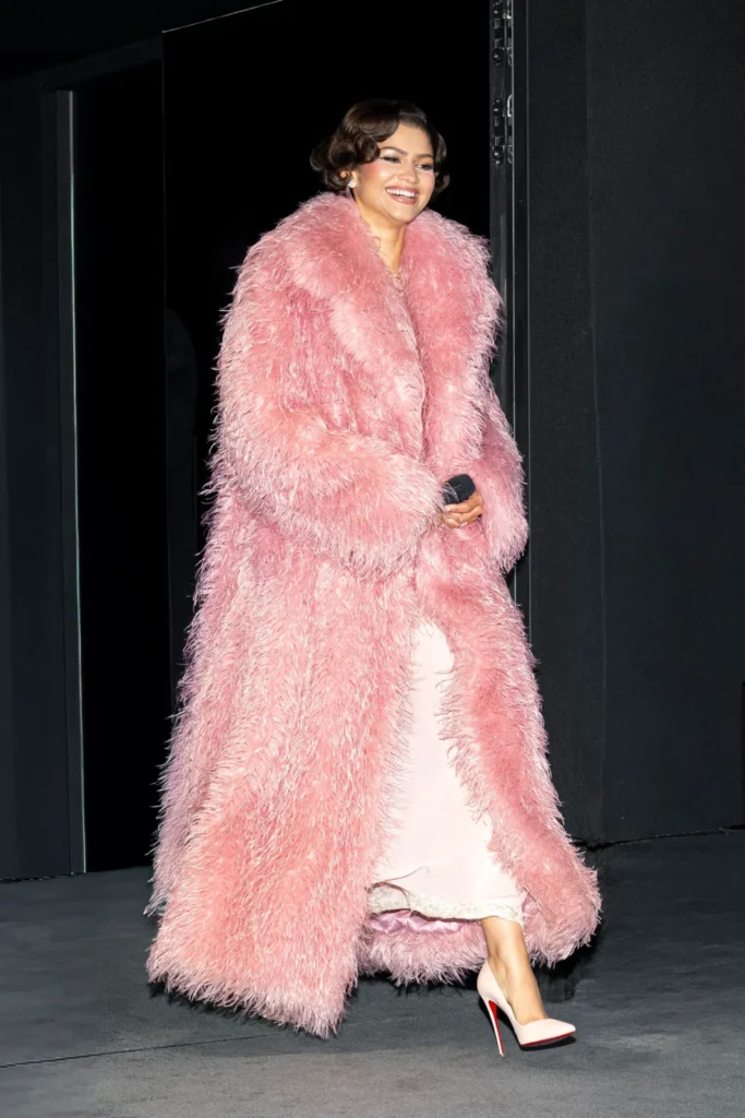 בפרמיירה החגיגית בפריז זנדאיה שוב הוכיחה שהיא המלכה הבלתי מעורערת של השטיח האדום כשהופיעה במעיל פרוותי ומרשים בגוון ורוד פסטלי מבית “Ermanno Scervino” לרגל הצגת הסרט “The Drama” המראה הזה שהיה מלא בנפח ובטקסטורה רכה.
