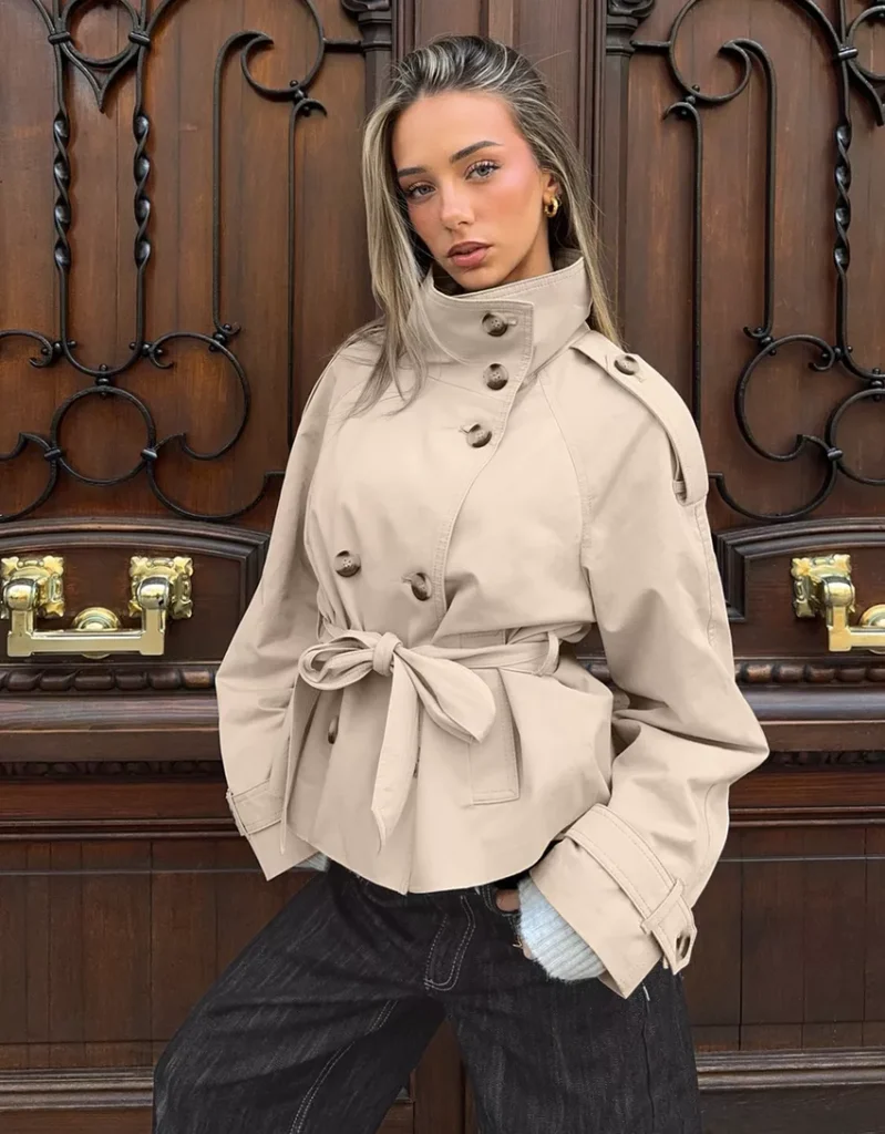 מעיל טרנץ’ עם צווארון משפך
