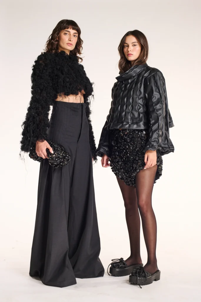 קולקציה שיצרה מורכבת מארבע מערכות לבוש, נעליים ותכשיטים כ-70% ממנה עשויה מפסולת: צמר גולמי, שאריות בדים, חוטי מתכת, פלסטיק מודפס, ואפילו פרחים מיובשים. כל אלה עובדו בטכניקות מסורתיות ועכשוויות כאחד, בהן סריגה, ליבוד, מידול תלת-ממד והמסה של חומרים קיימים, והפכו ליצירה חיה ונושמת, שמשלבת בין טבע לטכנולוגיה, בין התכלות ללידה מחודשת ואמירה נוקבת מתלכדות פה לפרויקט שמעורר מחשבה – וגם הרבה התפעלות.