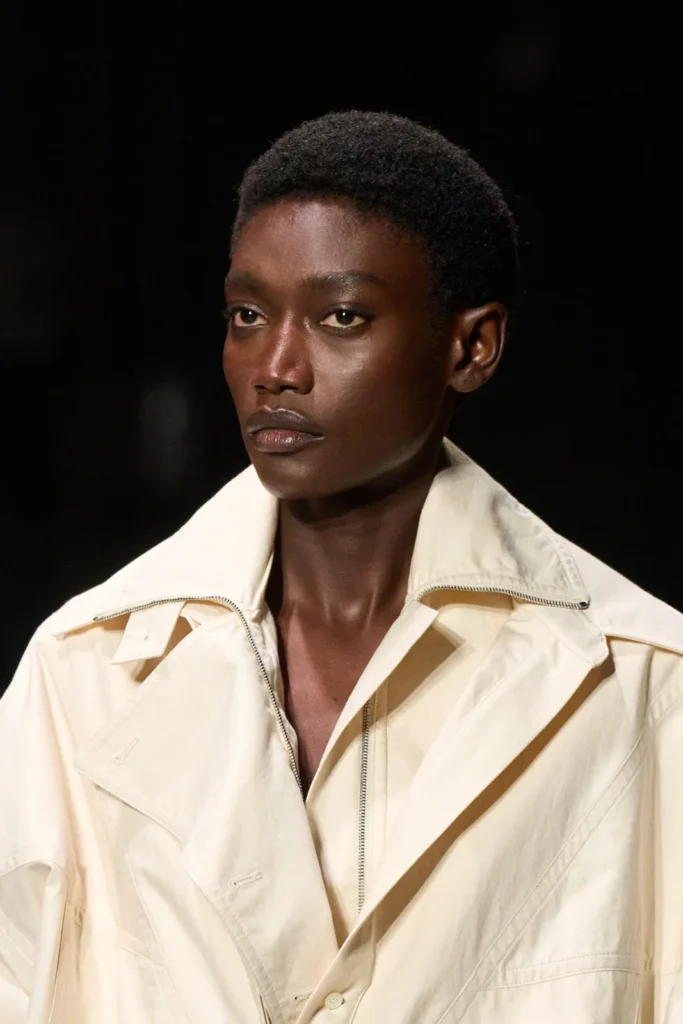 בנוסף, בתצוגת האביב רדי טו וור 2026 של בית האופנה לואווה בנו לוק של מעיל רוח בצבע שחור, מתחתיו מעיל רוח בצבע חום בהיר, מתחתיו מעיל רוח בגוון כחול תכלת, מתחתיהם סוודר דק בעל צווארון גבוה בצבע אדום ומתחתיהם מבצבץ צווארון של מכופתרת בגוון צהוב בננה עם תחתון שחור, ללא מכנסיים. לכל זה נוספו משקפי שמש גדולים בצבע שחור עם עיטורים כתומים, תיק יד מעור בגוון כחול רויאל עם פרטים בצבע זהב ונעלי לופרס שקופות עם גרביים בצבע כתום.