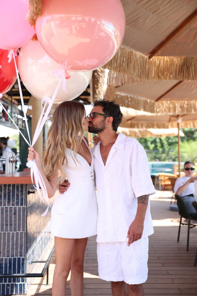 לצד חברים קרובים וחגיגה מתוקשרת בבר “לוקאאוט” בתל אביב, בחרה אמילי ללבוש שמלת מיני לבנה מבית “דה לור” מותג שמלות כלה וערב, והבחירה לא יכלה להיות מתאימה יותר. השמלה בגזרת מיני קלאסית, חושפת קצת כתפיים עם מחשוף וי עמוק, מחויטת בקו מותן צמוד שמודגש על ידי חגורת בד כפולה עם אבזמים עדינים, מה שהעניק לה מראה נשי, צעיר אך מלא עוצמה. הגזרה הנקייה יחד עם הצבע הלבן יצרו שילוב שגרם לה להיראות כמו כלה מודרנית אולי אפילו רמז לעידן?