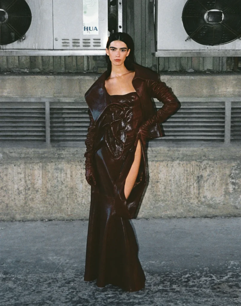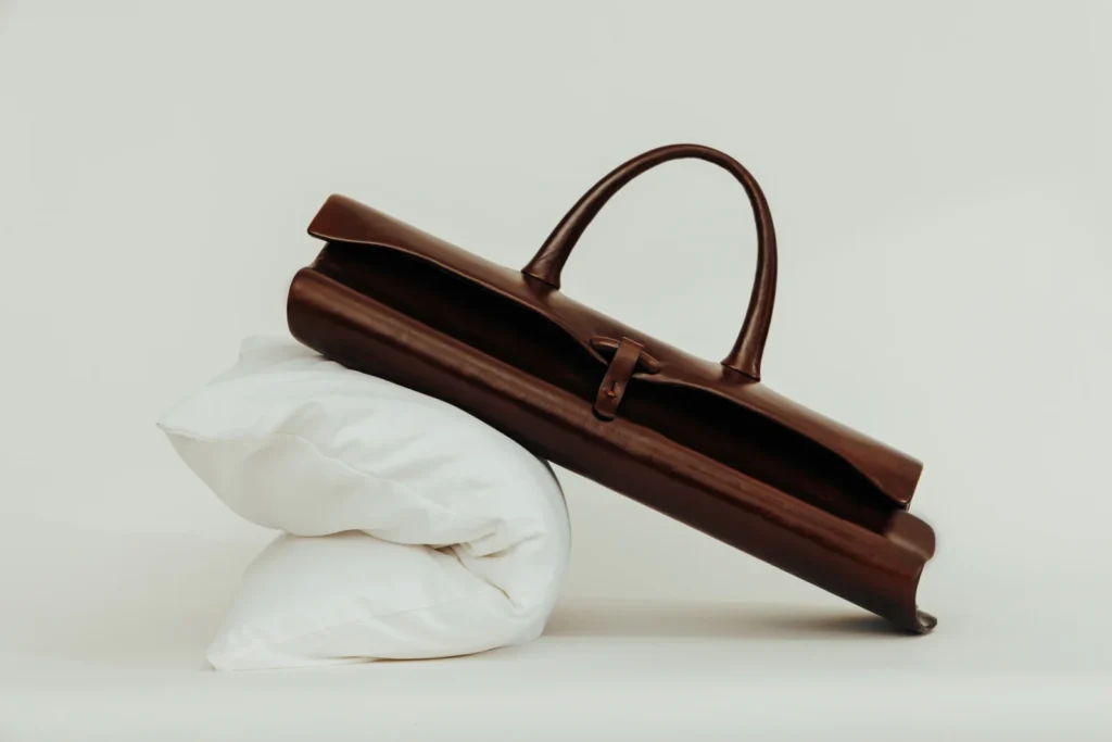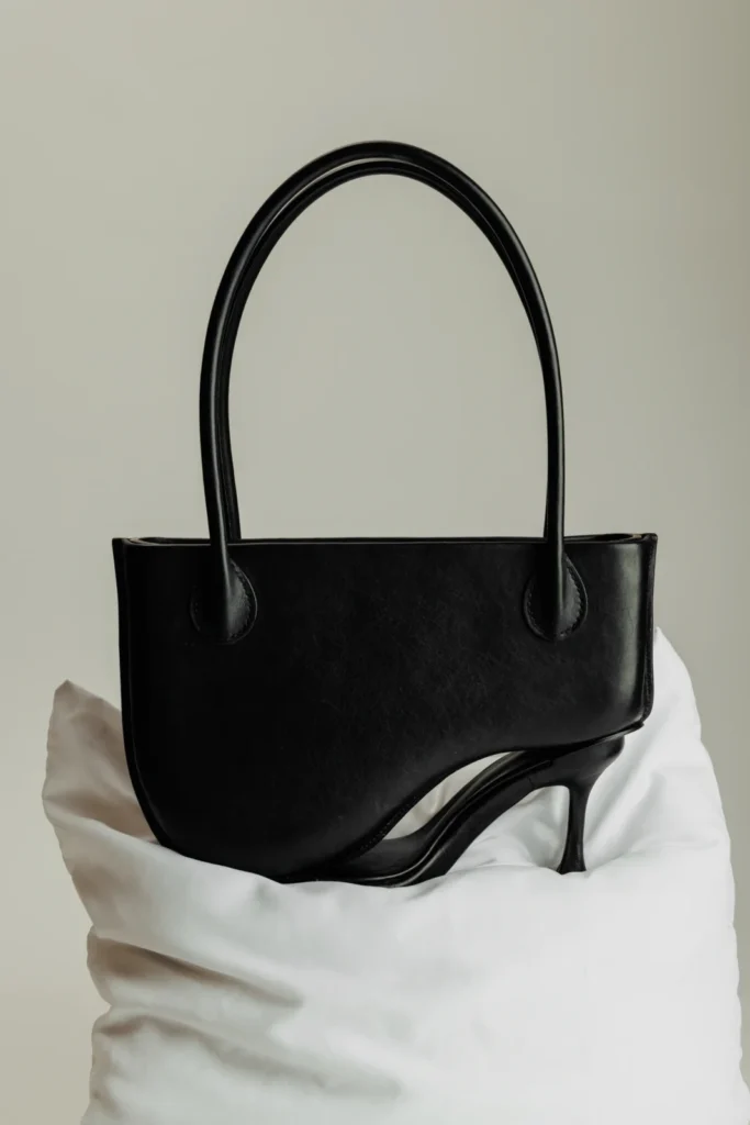 כחלק מהקולקציה הוצאתי גם קולקציית תיקים, שניים מהם היו בטכניקה של הדפסת תלת מימד וציפוי בעור שההשראה לעיצוב שלהם הייתה באמת לייצר תנועה באובייקט סטטי ולחקות את נראות הגוף הנשי. היה לי חשוב גם שהתיק יראה שונה מכל זווית בה הצופה מסתכל ובכך למעשה הוא מייצר איזשהו דיאלוג תנועתי עם הצופה. בנוסף, עיצבתי תיקים בצורת נעל עקב על מנת לחקור את מערכת היחסית ממשטרת בין גוף לבין מה שאנו עוטים עליו. נעל עקב היא סממן לדיכוי נשי ואני בחרתי להפוך את נעל העקב לתיק שהאישה יכולה לשאת ולשלוט בו ובכך למעשה לעשות שימוש מחודש באובייקט שעד כה נחשב סמל לדיכוי נשי. וגם חשוב לציין שהחומר המרכזי שבחרתי להשתמש בו בקולקציה היה עור כיוון שהוא אפשר לי גם לייצר מעין כסות משנית לגוף שנותנת תחושה של גוף מעוות”.